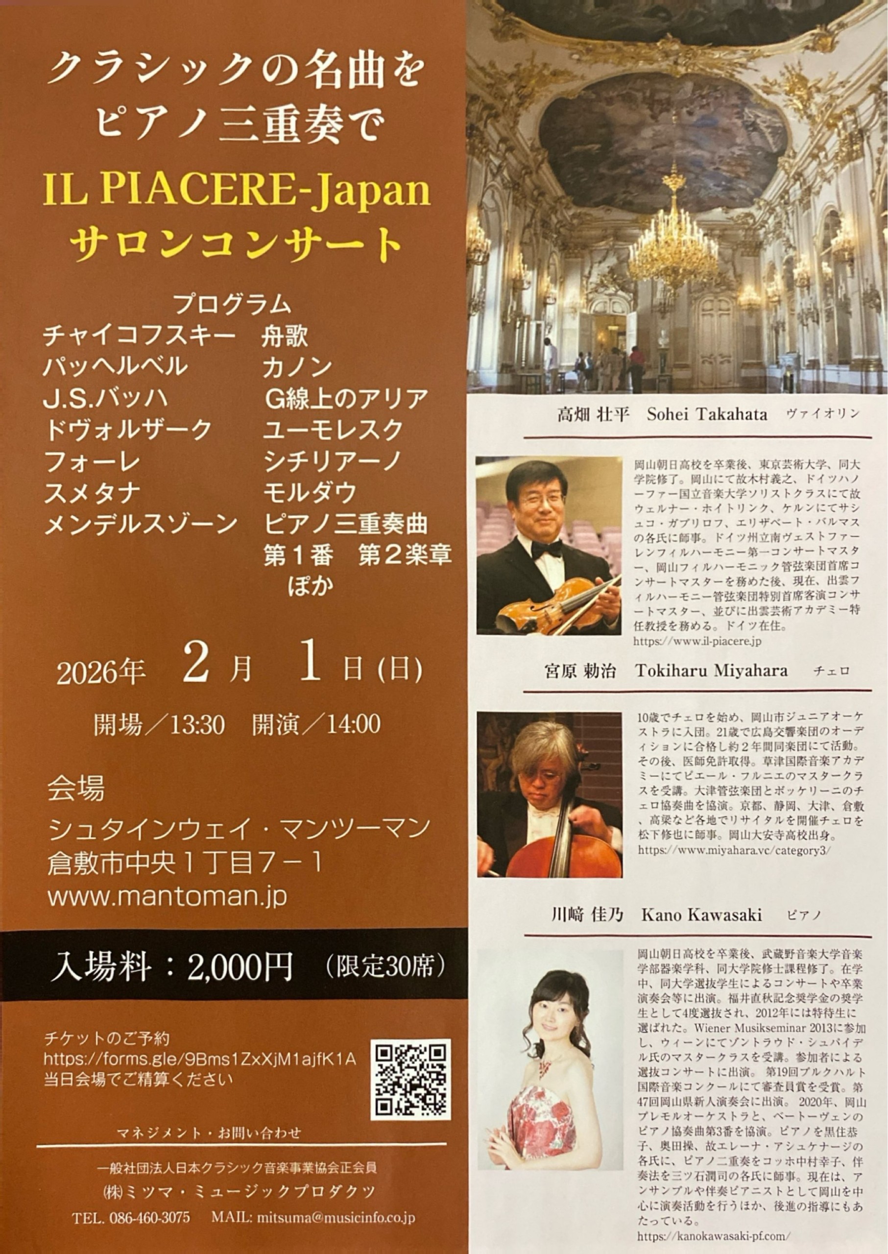 2月1日にイル・ピアチェーレのサロンコンサートの開催が決まりました。